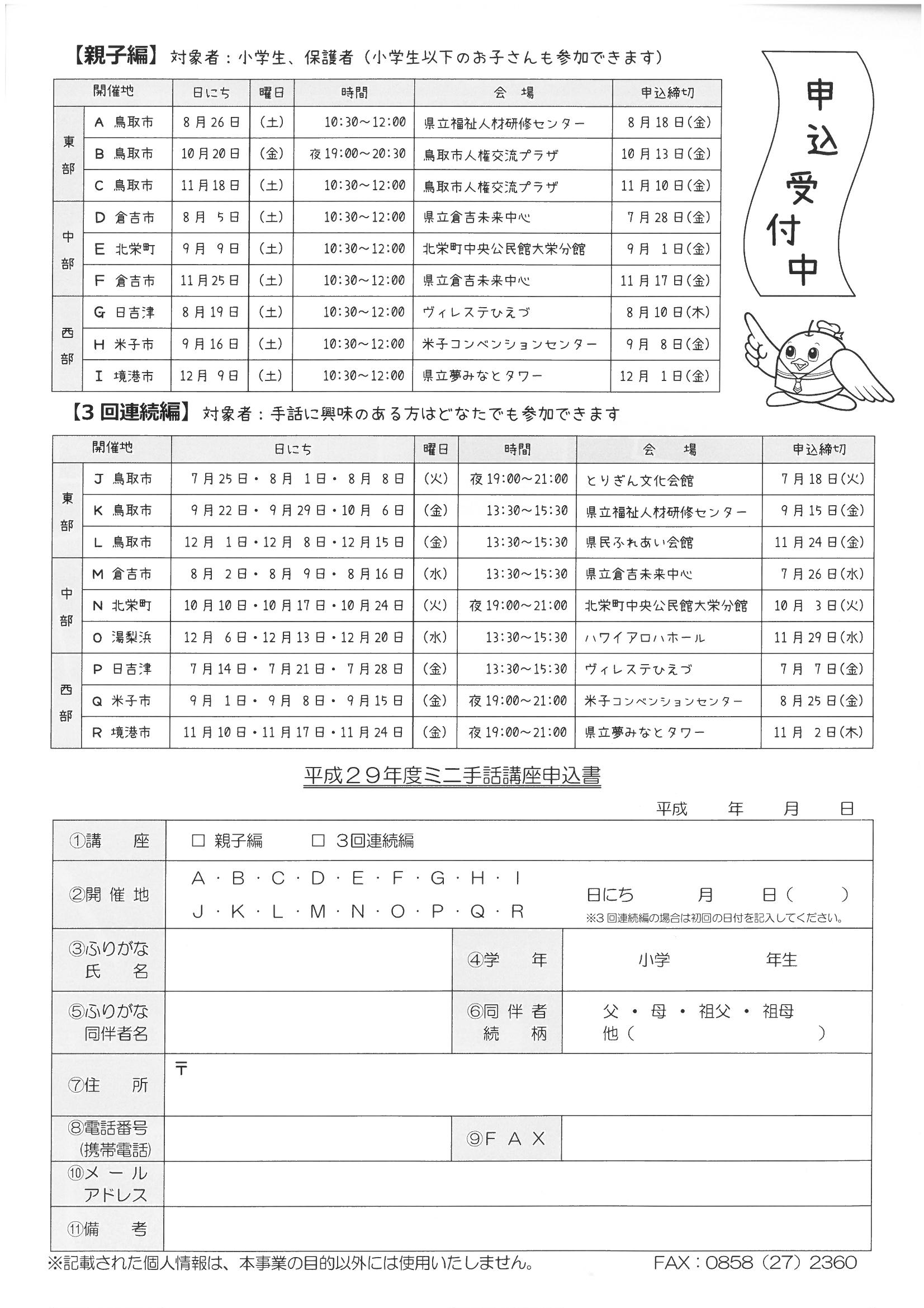 お申込み・お問い合わせは、「鳥取県中部聴覚障がい者センター」まで。