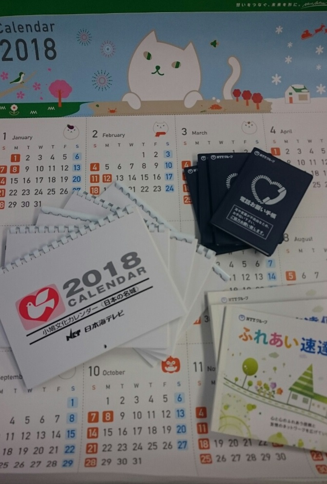 カレンダー頂きました 2017-12-13(水) ひと言日記 社会福祉法人鳥取県ライトハウス点字図書館さんより、今年も点字カレンダーなど頂きました。 【画像】2018年点字カレンダー 点字ユーザーの盲ろう者や、点字学習中の盲ろう者に使っていただきます。ありがとうございました!!